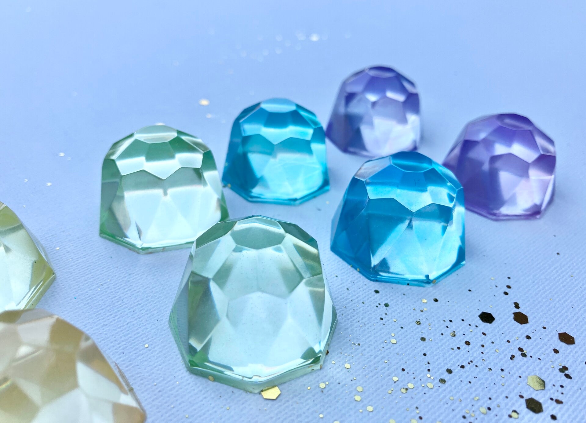 Deze prachtige XL diamanten zijn gevuld met epoxy en een parelmoer glans in zachte pastel tinten. Perfect passend bij de Stapelstein pastel stenen.